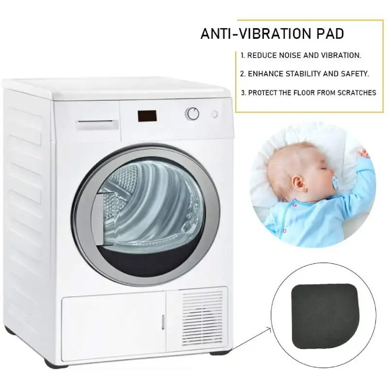 • امتصاص فائق للاهتزاز: تعمل هذه الوسادات على امتصاص الاهتزازات الناتجة عن الغسالة أو المجفف بفعالية، مما يقلل الضوضاء ويمنحك بيئة هادئة ومريحة.