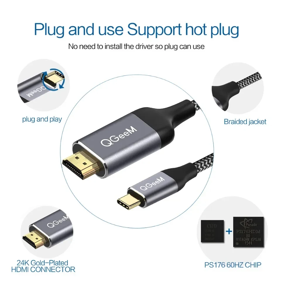 Qgeem 4K USB-C to HDMI Cable - كابل كيو جييم 4 كيه يو اس بي-سي إلى اتش دي ام اي