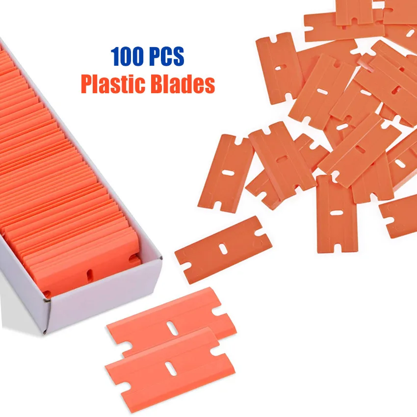 100 Pieces Two Cutting Plastic Razor Blade Label Clean Razor Glue Remover Window Glass Clean Scraper Car Wrap Sticker Squeegee