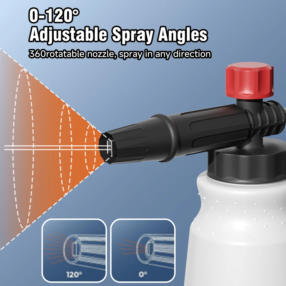• رغوة قابلة للتعديل: يمكنك التحكم في كثافة الرغوة ونمط الرش لتناسب احتياجاتك، سواء كنت ترغب في تغطية واسعة أو تنظيف دقيق للمناطق الصعبة.