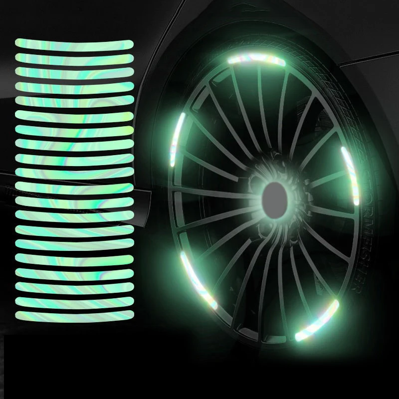 20pcs Car Wheel Hub Reflective Sticker High Reflective Stripes Tape for Motorcycle Bicycle Car Wheel Decoration Luminous Strips