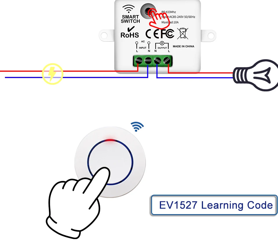 The relay controller is RF Receivers,the wall switch is RF only.Wall switch itself cannot control lights on off.It needs to work with rf receiver together.